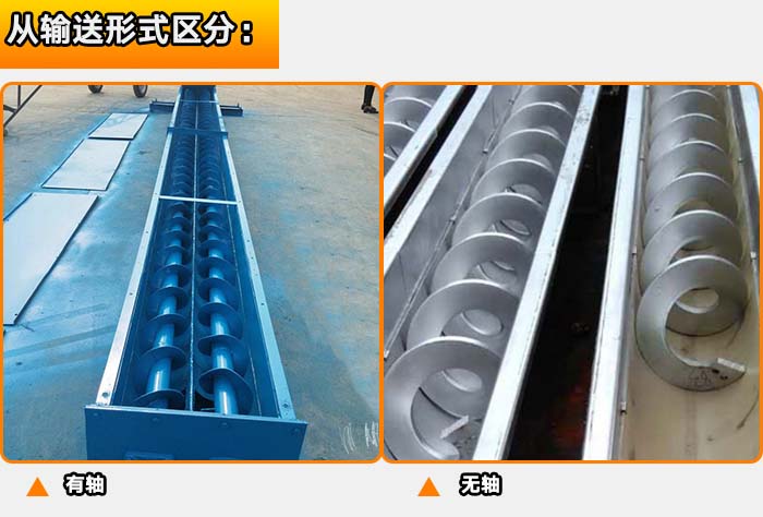 螺旋輸送機(jī)從輸送形式上可分為:有軸和無(wú)軸螺旋之分。