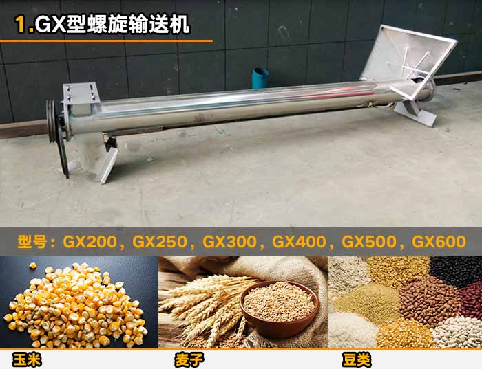 GX型螺旋輸送機(jī)是較老的螺旋輸送設(shè)備,其有單管于雙管兩種形式,適用于水平的輸送傾斜角不能夠超過(guò)20°。可輸送一些塊狀的(小塊狀物料)例如:麥子,玉米,黃豆等糧食。