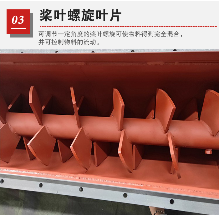 槳葉螺旋葉片可調節一定角度的槳葉螺旋可使物料得到完全混合,并可控制物料的流動。
