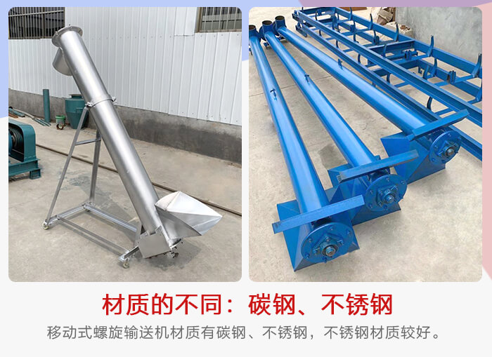 一臺移動式螺旋輸送機的價格主要和型號不同有關系,而在型號的因素中,移動式螺旋輸送機的結構、材質、輸送功率等三方因素也是直接影響價格的重要因素。下面小編就為您介紹一下這三個方面有哪些差異?