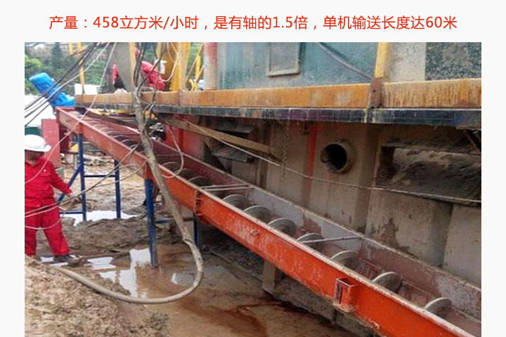 輸送量大,距離長(zhǎng):無(wú)軸螺旋輸送機(jī)產(chǎn)量達(dá)458立方米/小時(shí),是有軸的1.5倍,扭矩可達(dá)4000N.m,單機(jī)輸送長(zhǎng)度達(dá)60米。