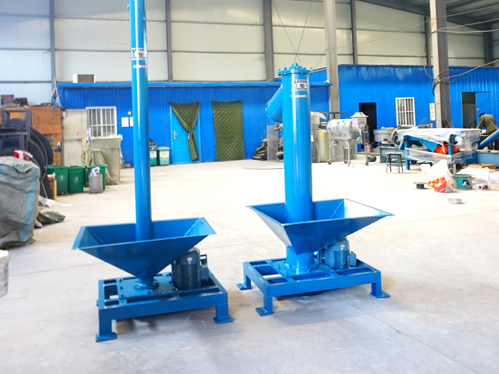 立式螺旋輸送機由水平進料螺旋和垂直喂料螺旋組成。