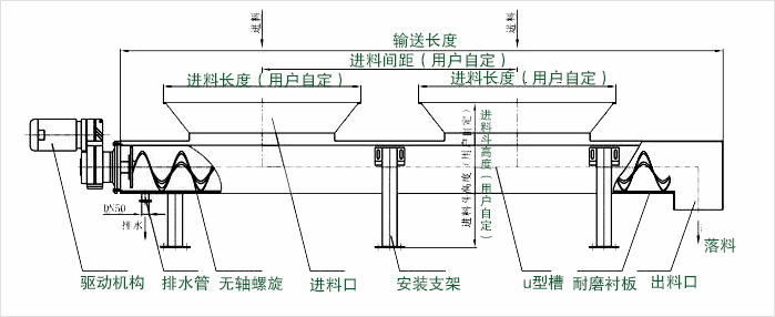 3、螺旋軸:分為有軸和無(wú)軸兩種,可選擇碳鋼或不銹鋼材質(zhì)。