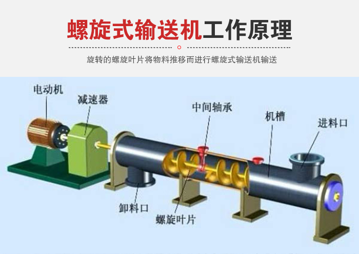 螺旋式輸送機(jī)是一種利用電機(jī)帶動螺旋回轉(zhuǎn),推移物料以實現(xiàn)輸送目的的機(jī)械。