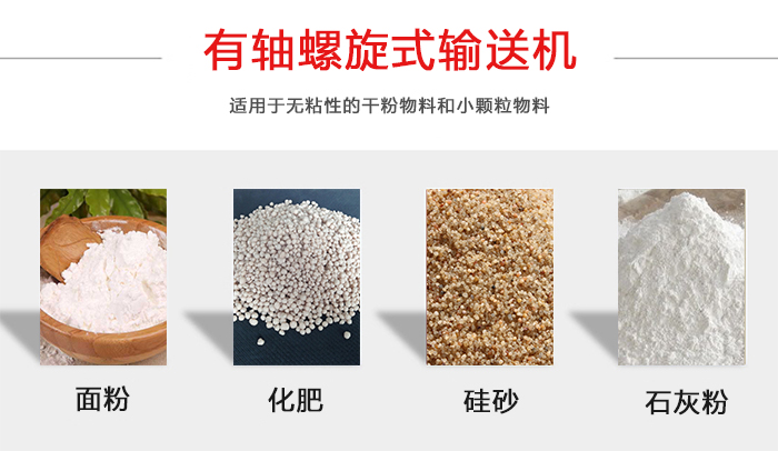 有軸螺旋式輸送機(jī)適用于無粘性的干粉物料和小顆粒物料.(例如:水泥、粉煤灰、石灰、糧等)而無軸螺旋式輸送機(jī)適合輸送機(jī)由粘性的和易纏繞的物料。(例如:污泥、生物質(zhì)、垃圾等)