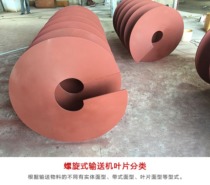 螺旋式輸送機(jī)旋轉(zhuǎn)軸上焊的螺旋葉片,葉片的面型根據(jù)輸送物料的不同有實體面型、帶式面型、葉片面型等型式。