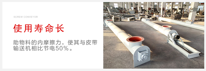(4)螺旋式輸送機(jī)使用壽命長,螺旋式輸送機(jī)工藝布置靈活,可高架、地面或地坑布置,可水平或爬坡(≤15°)安裝,也可同機(jī)水平加爬坡安裝,可多點進(jìn)出料。