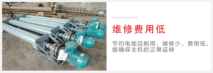 (5)螺旋式輸送機(jī)使用費用低,節(jié)電且耐用,維修少,費用低,能確保主機(jī)的正常運轉(zhuǎn),以增加產(chǎn)出、降低消耗、提高效益。