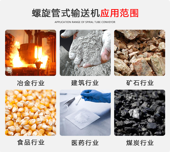 螺旋輸送機(jī)主要用于糧食、建材、冶金、化工、電力等行業(yè)對(duì)粉末、顆粒或小塊狀物料進(jìn)行輸送任務(wù),如水泥、混凝土、飼料、化肥、粉煤灰等物料,不宜輸送易變質(zhì)的、粘性大的、塊度大的及易結(jié)塊的物料。