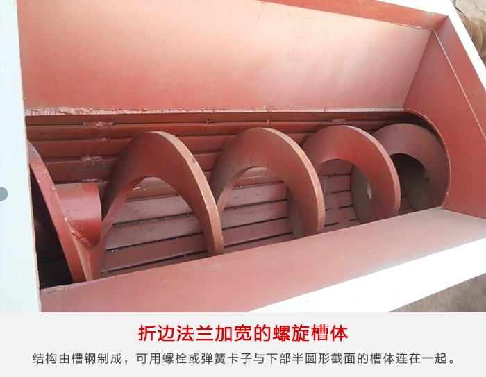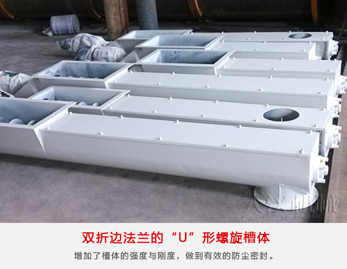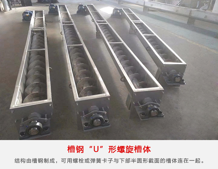 槽鋼“U”形螺旋槽體適用于輸送機(jī)支承間距要求長(zhǎng)的場(chǎng)合。槽體的上邊由結(jié)構(gòu)槽鋼制成,可用螺栓或彈簧卡子與下部半圓形截面的槽體連在一起。