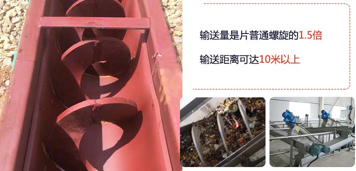 3、輸送量是同直徑螺旋的1.5倍,輸送距離可達(dá)10米以上,根據(jù)客戶要求,采用多級串聯(lián)安裝。